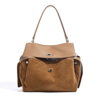 2025 venta al por mayor personalizado diseño moderno gamuza señoras marrón glaseado bolsos de cuero de vaca bolso de mano mujeres bandolera